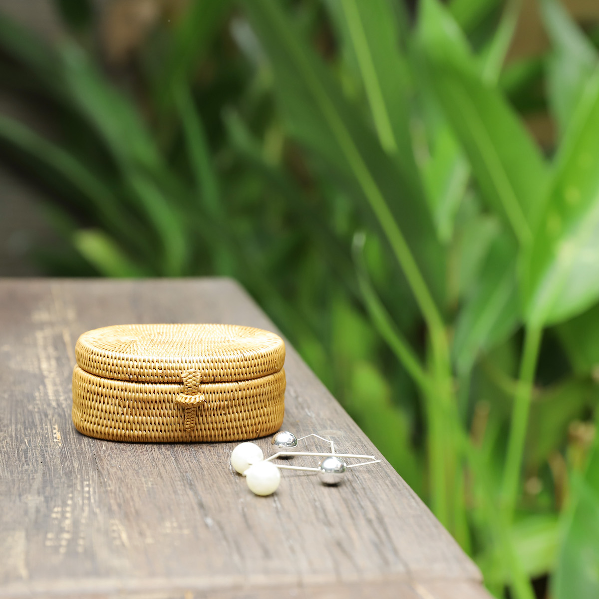 コンパクトながらしっかりとした作りのアタ製小物入れが、大切なアクセサリーをしっかり守り、持ち運びにも便利です。
