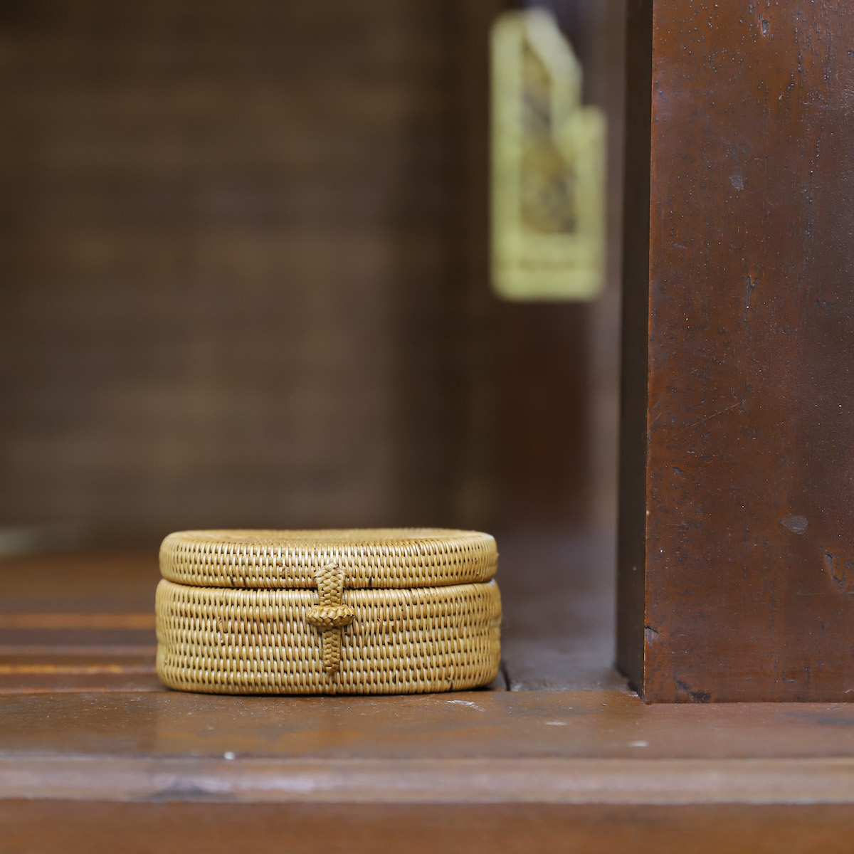 極細編みで丁寧に作られた、スーパークオリティのアタ製小箱です。