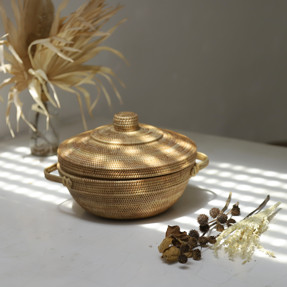 蓋のつまみと小さな持ち手が、まるで土鍋のようでとても可愛らしいデザインです。
