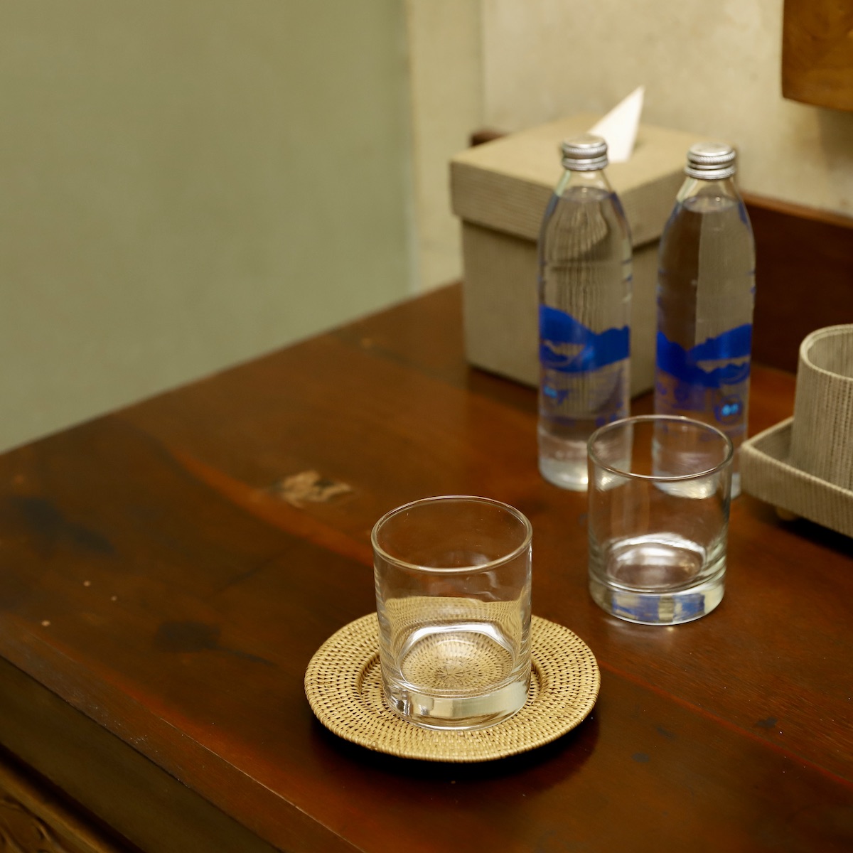 In Bali, many commonly sold Ata coasters use rattan as a core, resulting in a coarser weave.