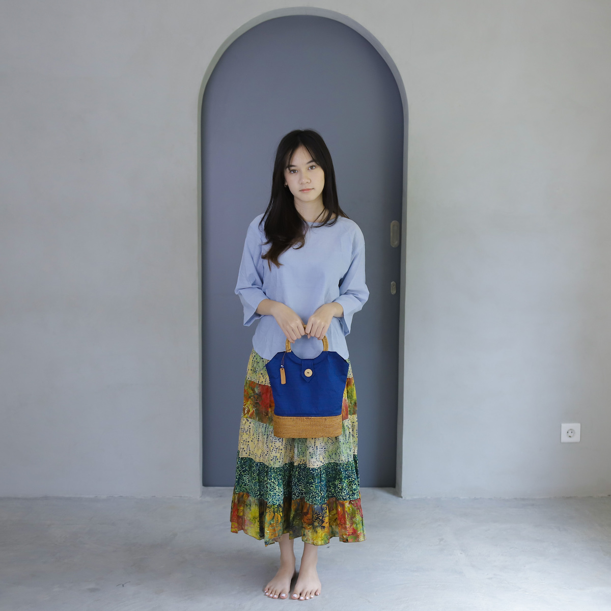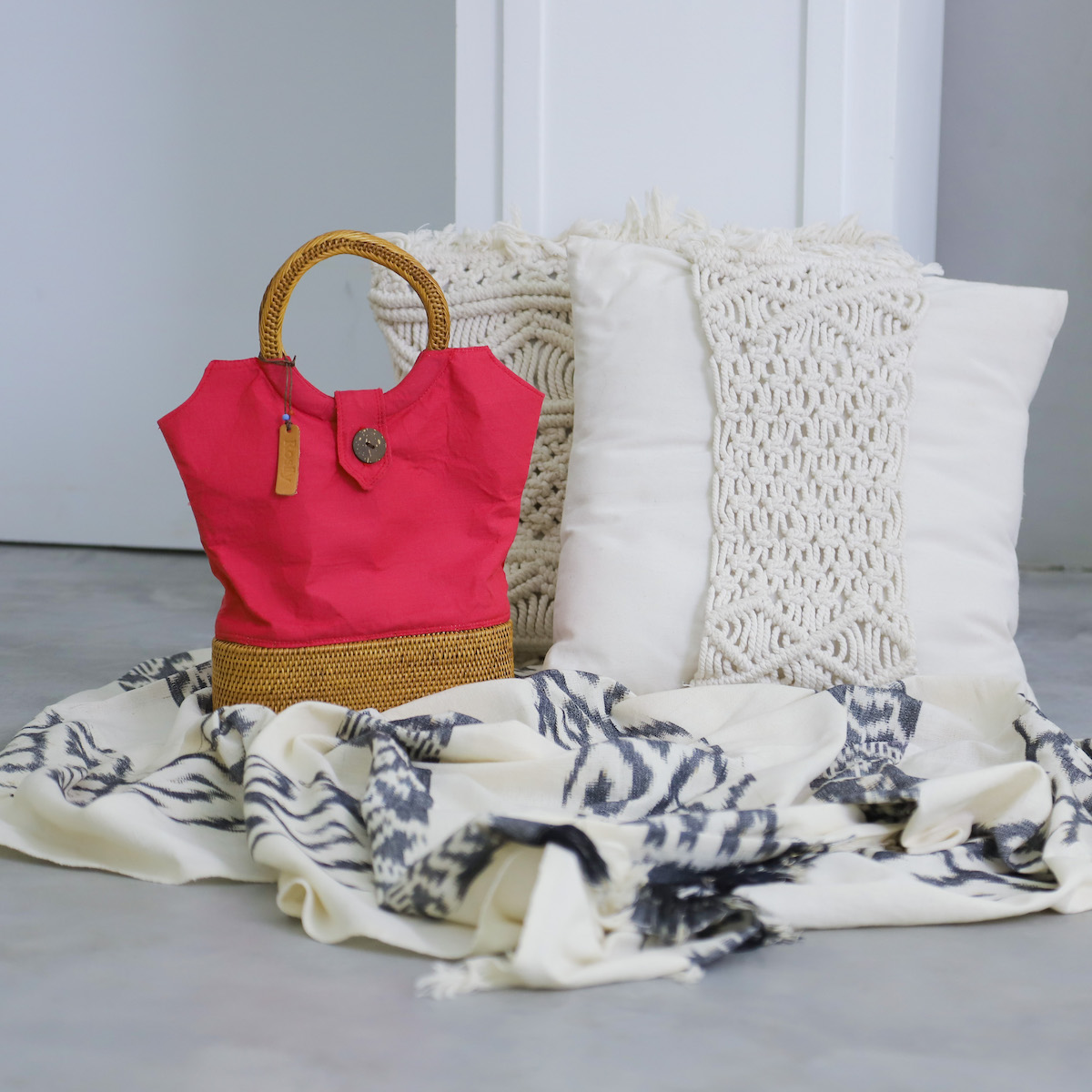 バリ島の伝統工芸であるアタ製品と布製品が見事に融合したアタバッグは、独特の魅力を放っています。