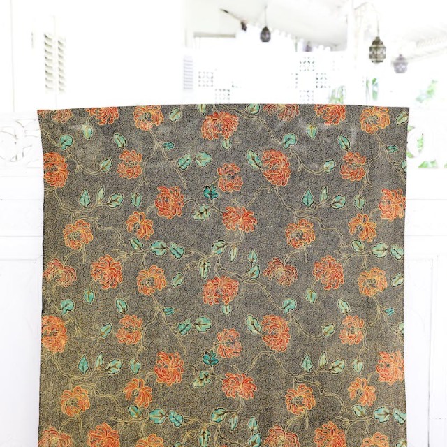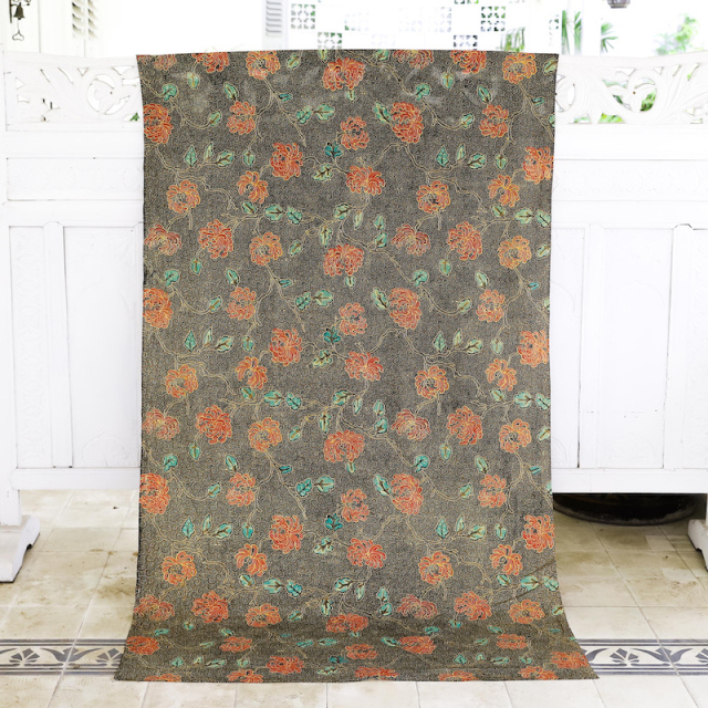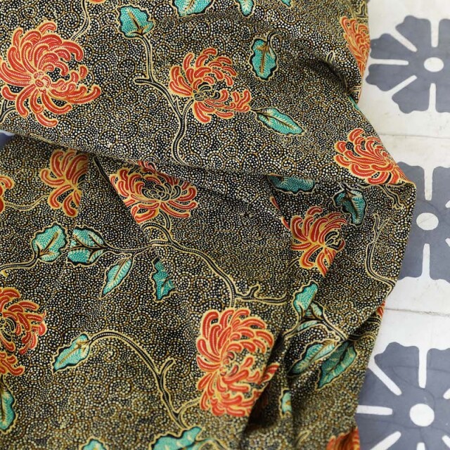 こちらは「ろうけつ染め」の絵柄をシルクスクリーンで印刷して仕上げた、プリントバティックです。