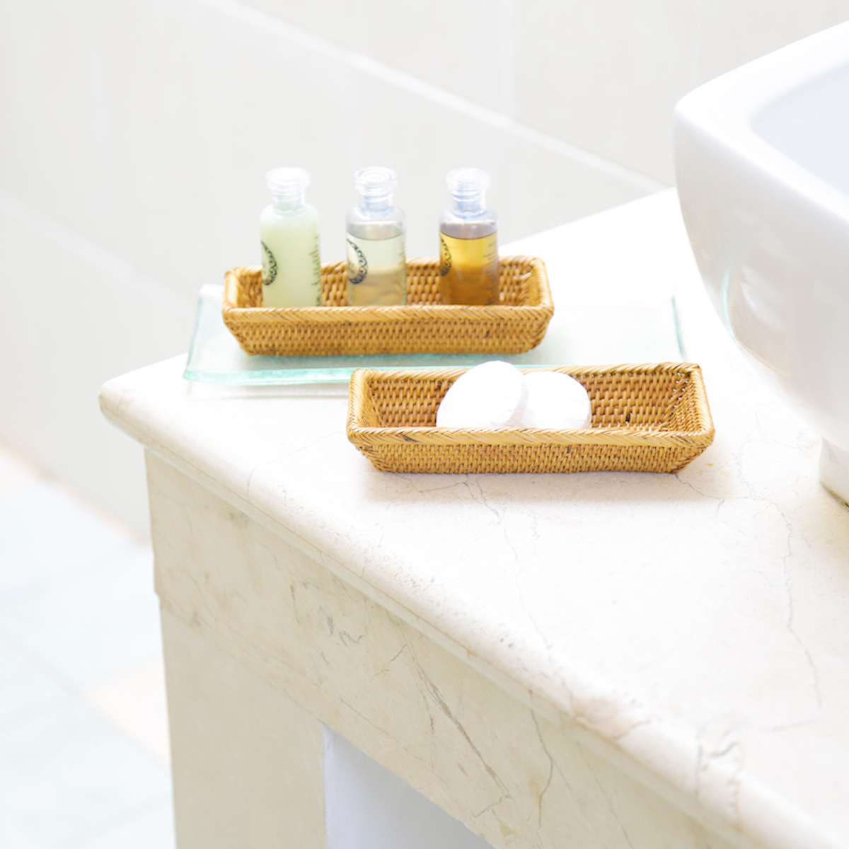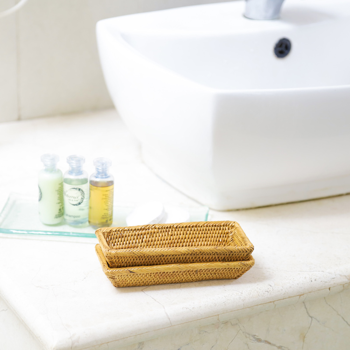 素敵なホテルに宿泊した時にいただいたアメニティーの石鹸などを入れて、エレガントな雰囲気をプラスできます。