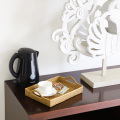 伝統的なアタのお盆にお茶を乗せて、お客様への心のこもったおもてなしを演出します。