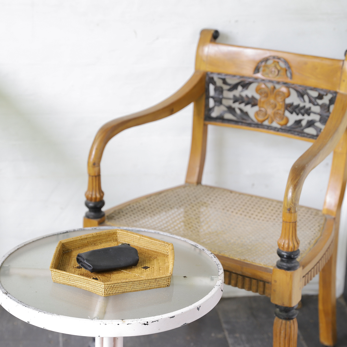 The black patterns, crafted from Ata roots, accentuate its beauty and add a refined touch to any space.